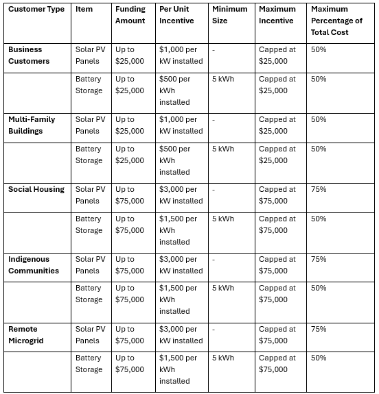 BC Hydro provides generous rebates to support the installation of solar PV panels and battery storage systems. These incentives aim to reduce the upfront costs and encourage the adoption of renewable energy solutions across various sectors. Below are the rebate details for different customer groups. Contact SPG for the latest funding availability.